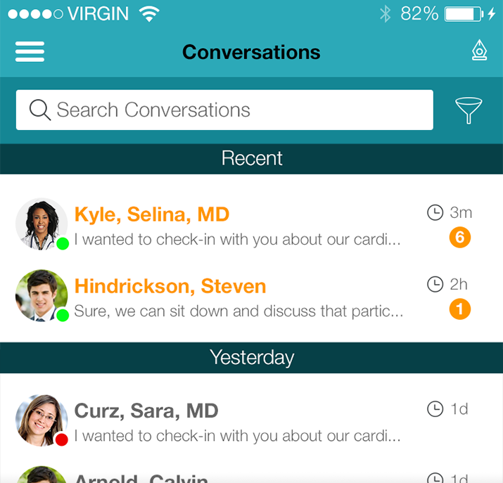 We reassessed the needs of Agnity's target audience and streamlined workflows for greater ease of use, while completely refreshing the UX and visual design of the app. We improved users' ability to share confidential patient records, including imaging records and labs. Our design retooled what was a fragmented messaging experience and offered users the capability to seamlessly move between video, voice and text modes of communication. We refined the ability of providers to invite patients into the communication process, giving them a view, at the appropriate level, into their care management.