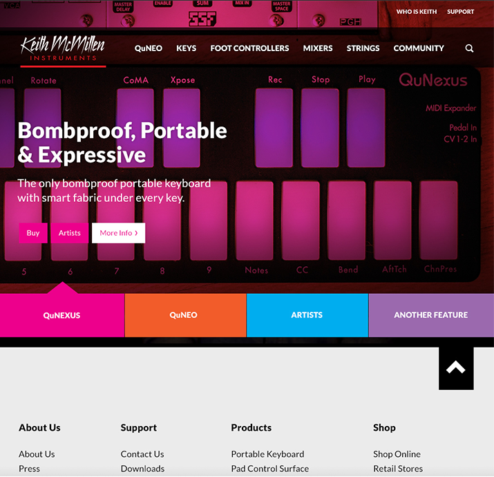 "Bombproof, portable and expressive." It's how Keith McMillen Instruments describes their smart-fabric based keyboards and electronic instruments, and can readily be used to describe the task we were given in designing their online presence.