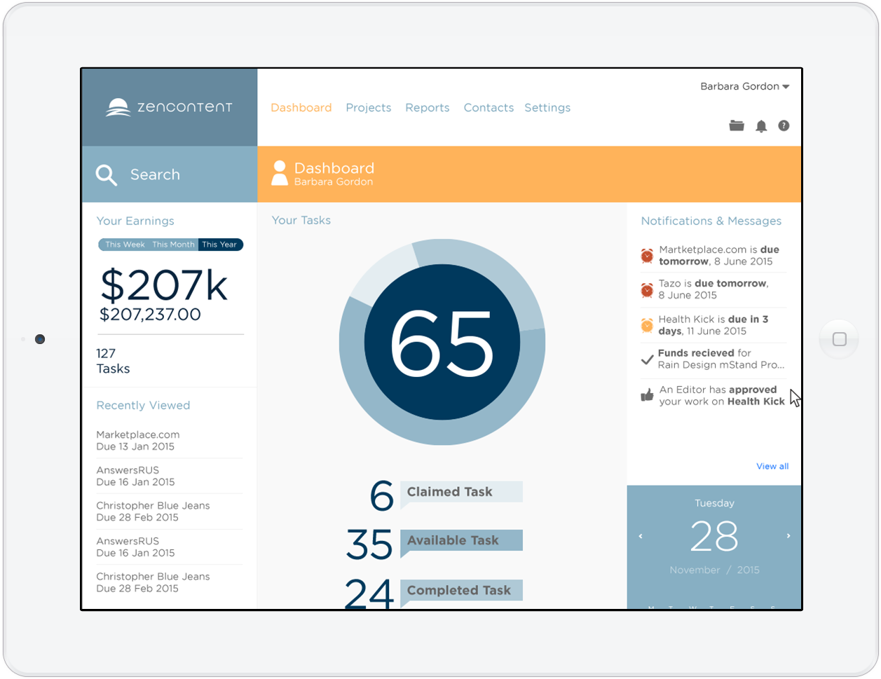 The marketplace we designed aided ZenContent in growing their business from a startup to a core service within parent company IZEA's content marketing platform. We did so by helping them attack the core issue of content quality, through a milestone-based service which enabled them to nurture and coach their contract writer community throughout the editorial process.